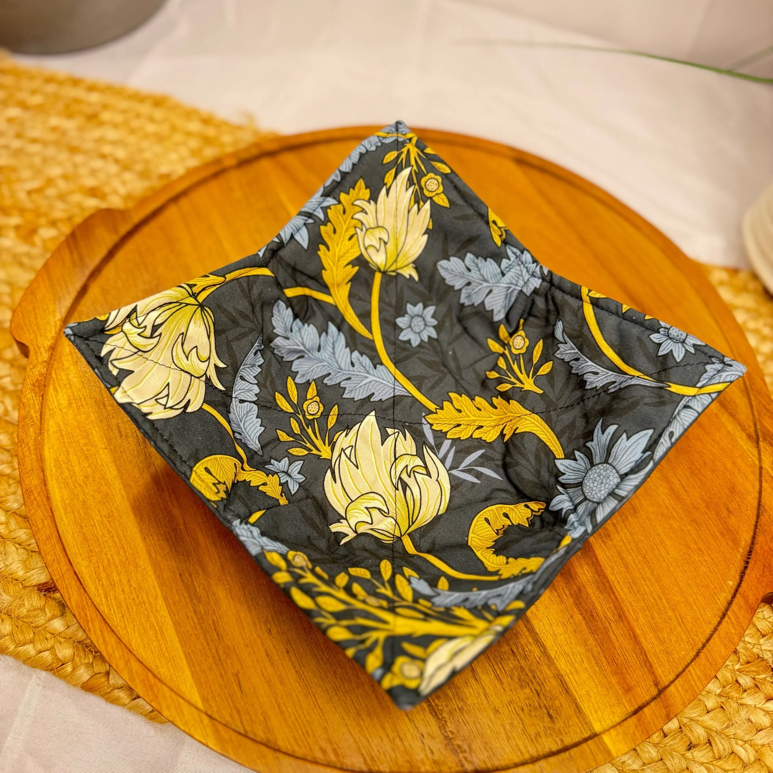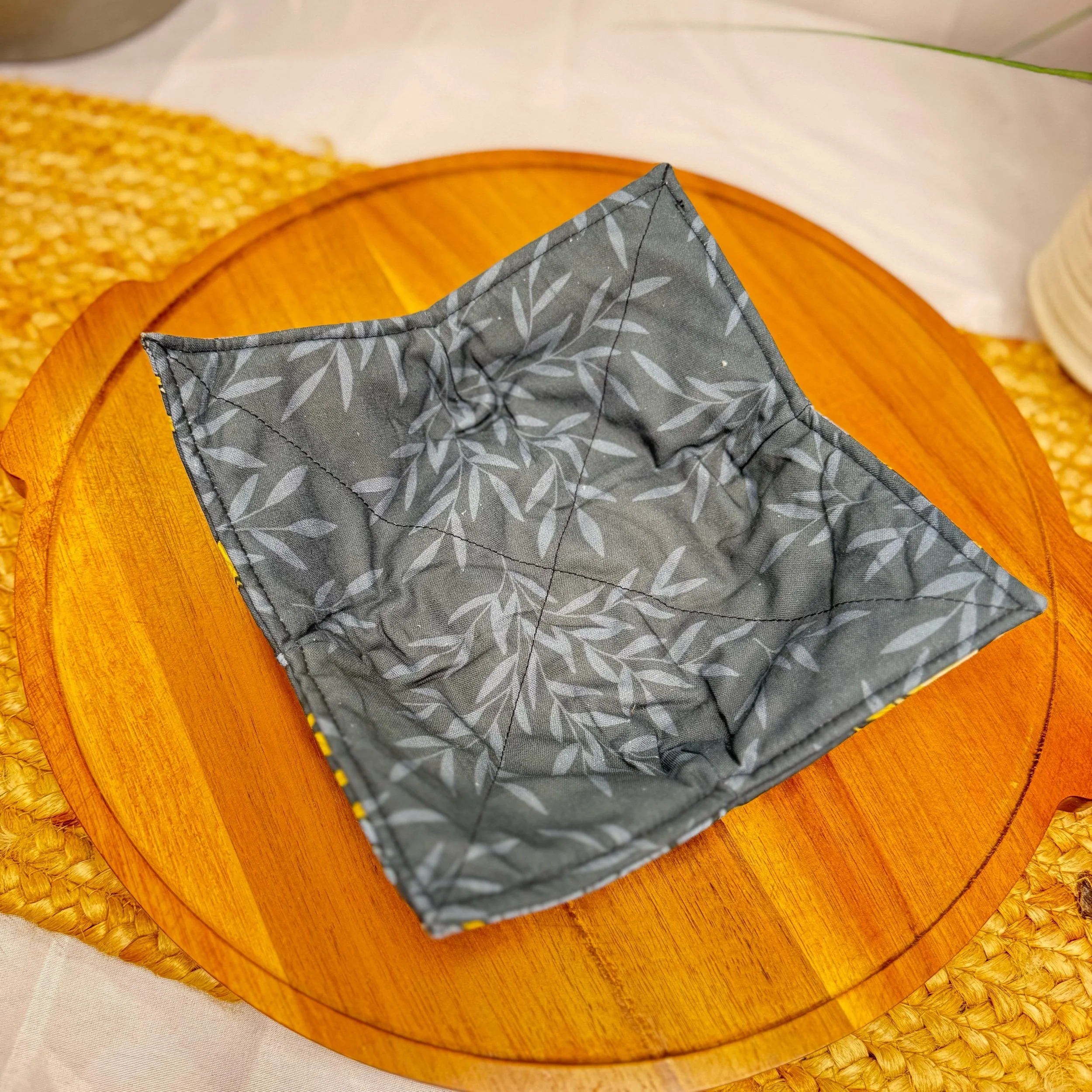 This nifty tool is designed to hold hot or cold bowls and its primary function is to protect your hands. Machine-washable and reversible, the bowl cozy can be reused over multiple meals.